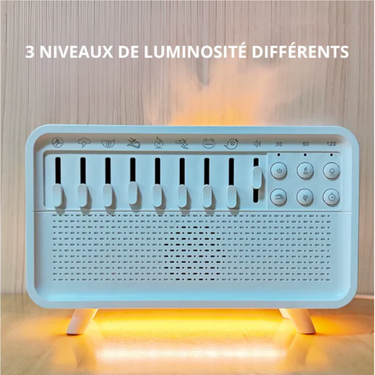 Plongez dans un monde de calme absolu avec Somelya Halo, l’enceinte d’ambiance sonore multifonction pensée pour favoriser un endormissement naturel et profond. À la croisée du design moderne et de la technologie bien-être, elle diffuse des sons apaisants de la nature, une brume relaxante, et une lumière douce qui crée une atmosphère cocooning en un clin d’œil.